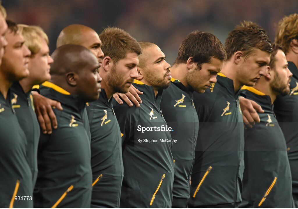 8 November 2014; Bryan Habana and his South Africa team-mates ahead of the game. Guinness Series, Ireland v South Africa, Aviva Stadium, Lansdowne Road, Dublin. Picture credit: Stephen McCarthy / SPORTSFILE