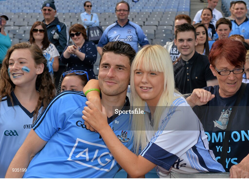 20 July 2014; Dublin's Bernard Brogan poses for a photograph with supporter Shelby Leeper, from Ballymun. Leinster GAA Football Senior Championship Final, Dublin v Meath, Croke Park, Dublin. Picture credit: Ray McManus / SPORTSFILE