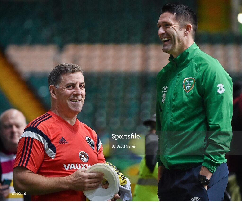 14 November 2014; Republic of Ireland's Robbie Keane chats with Scotland assistant coach and former Wolves manager Mark McGee before the game. UEFA EURO 2016 Championship Qualifier, Group D, Scotland v Republic of Ireland, Celtic Park, Glasgow, Scotland. Picture credit: David Maher / SPORTSFILE