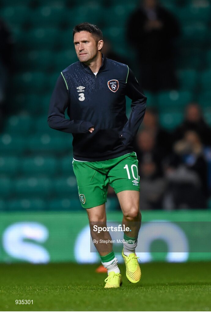 14 November 2014; Robbie Keane, Republic of Ireland, warms up ahead of the game. UEFA EURO 2016 Championship Qualifier, Group D, Scotland v Republic of Ireland, Celtic Park, Glasgow, Scotland. Picture credit: Stephen McCarthy / SPORTSFILE