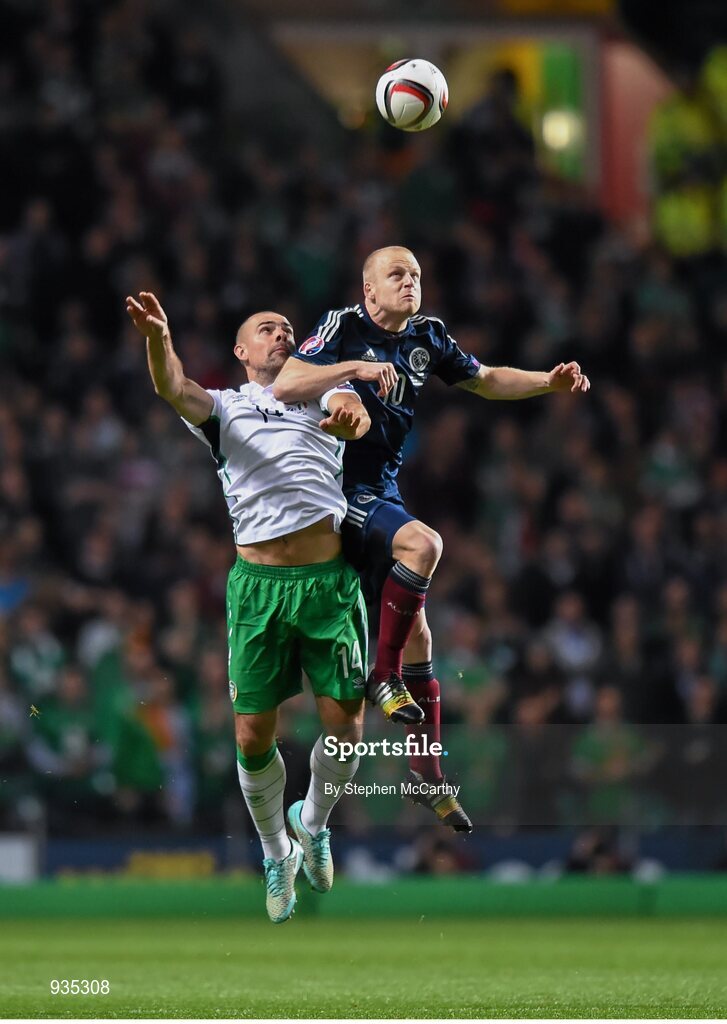 14 November 2014; Steven Naismith, Scotland, in action against Darron Gibson, Republic of Ireland. UEFA EURO 2016 Championship Qualifer, Group D, Scotland v Republic of Ireland, Celtic Park, Glasgow, Scotland. Picture credit: Stephen McCarthy / SPORTSFILE