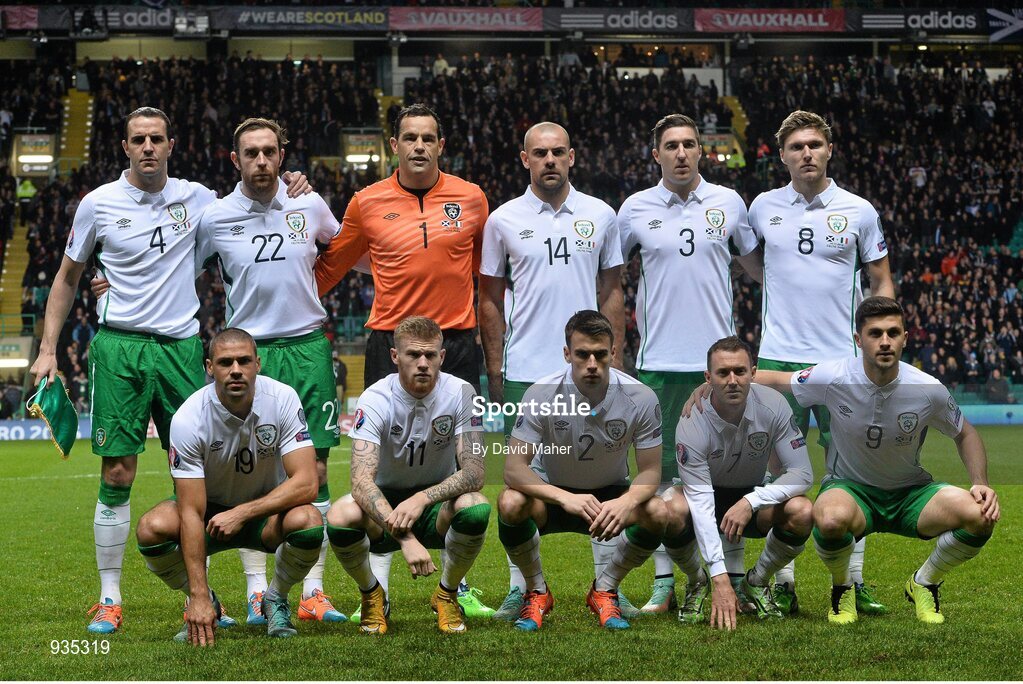 14 November 2014; The Republic of Ireland team, back row, from left to right, John O'Shea, Richard Keogh, David Forde, Darron Gibson, Stephen Ward and Jeff Hendrick. front row, from left to right, Jonathan Walters, James McClean, Seamus Coleman, Aidan McGeady and Shane Long. UEFA EURO 2016 Championship Qualifer, Group D, Scotland v Republic of Ireland, Celtic Park, Glasgow, Scotland. Picture credit: David Maher / SPORTSFILE
