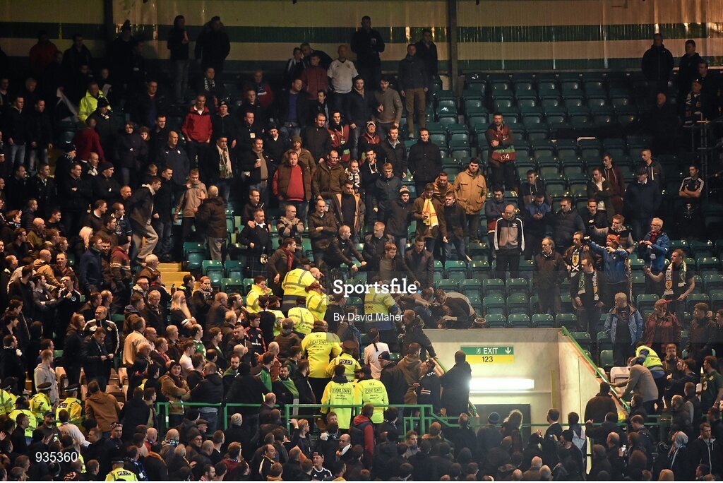14 November 2014; Stewards and police confront supporters during the second half. UEFA EURO 2016 Championship Qualifier, Group D, Scotland v Republic of Ireland, Celtic Park, Glasgow, Scotland. Picture credit: David Maher / SPORTSFILE
