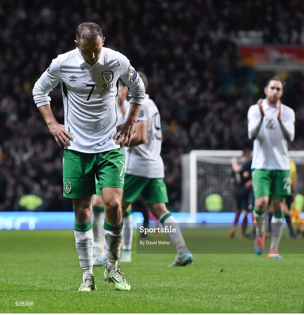 14 November 2014; A dejected Aiden McGeady, Republic of Ireland, at the end of the game. UEFA EURO 2016 Championship Qualifier, Group D, Scotland v Republic of Ireland, Celtic Park, Glasgow, Scotland. Picture credit: David Maher / SPORTSFILE