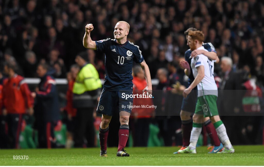 14 November 2014; Steven Naismith, Scotland, celebrates his side's victory. UEFA EURO 2016 Championship Qualifier, Group D, Scotland v Republic of Ireland, Celtic Park, Glasgow, Scotland. Picture credit: Stephen McCarthy / SPORTSFILE
