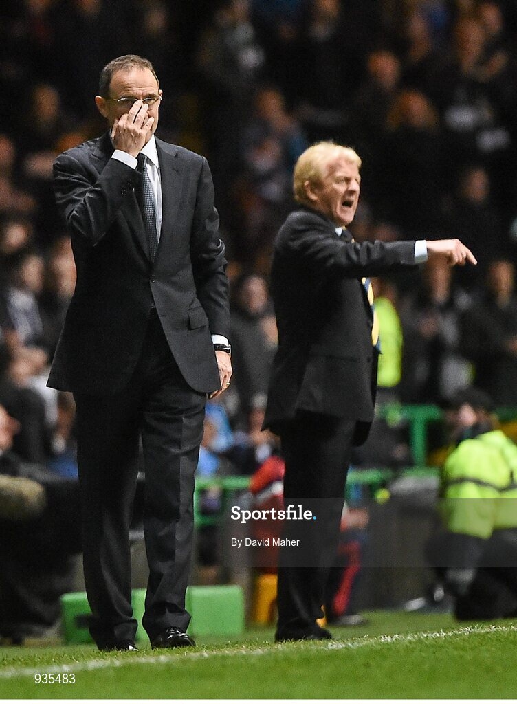 14 November 2014; Republic of Ireland Martin O'Neill manager with Scotland manager Gordon Strachan. UEFA EURO 2016 Championship Qualifer, Group D, Scotland v Republic of Ireland, Celtic Park, Glasgow, Scotland. Picture credit: David Maher / SPORTSFILE