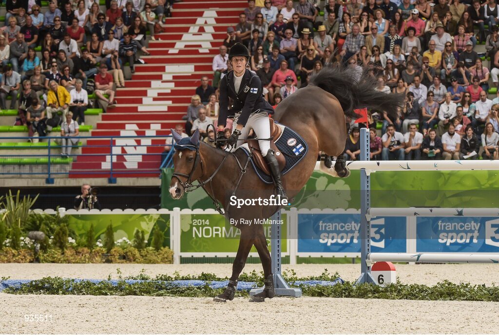 2 September 2014; Finland's Maiju Mallat on Armani The Gun CH competing during the First Round of the Showjumping. 2014 Alltech FEI World Equestrian Games, Caen, France. Picture credit: Ray McManus / SPORTSFILE