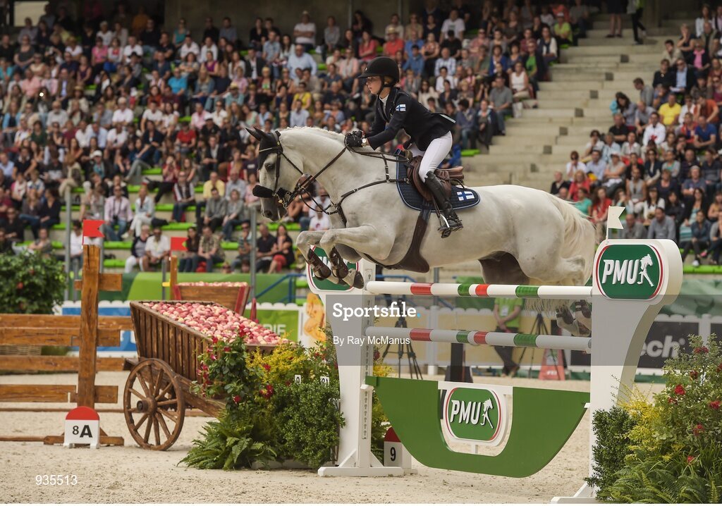 2 September 2014; Finland's Anna-Julia Kontio on Fardon competing during the First Round of the Showjumping. 2014 Alltech FEI World Equestrian Games, Caen, France. Picture credit: Ray McManus / SPORTSFILE