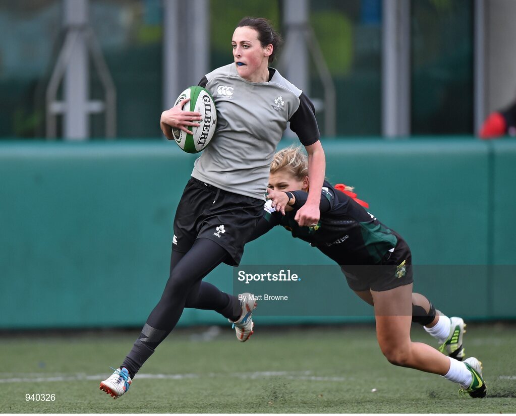 27 November 2014; Hannah Tyrrell, Ireland, in action against Australia Tribe 7's. Women's Rugby 7's Tournament, Ireland v Australia. Lansdowne RFC, Lansdowne Road, Dublin. Picture credit: Matt Browne / SPORTSFILE