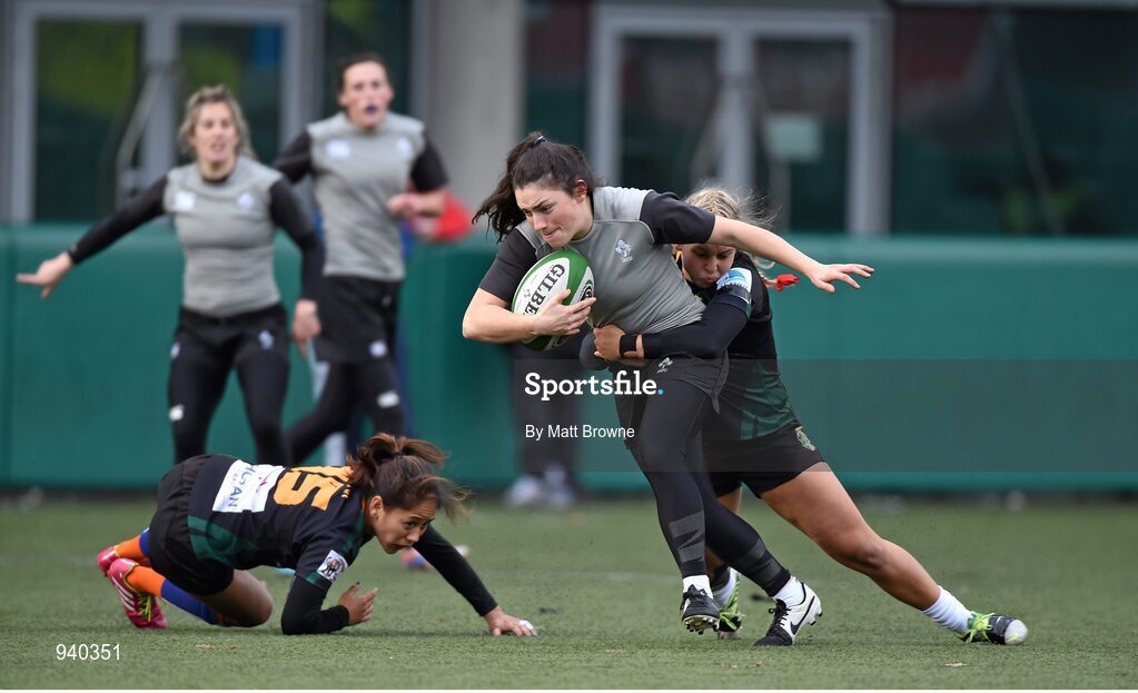 27 November 2014; Lucy Mclhall, Ireland in action against Australia Tribe 7's. Women's Rugby 7's Tournament, Ireland v Australia. Lansdowne RFC, Lansdowne Road, Dublin. Picture credit: Matt Browne / SPORTSFILE