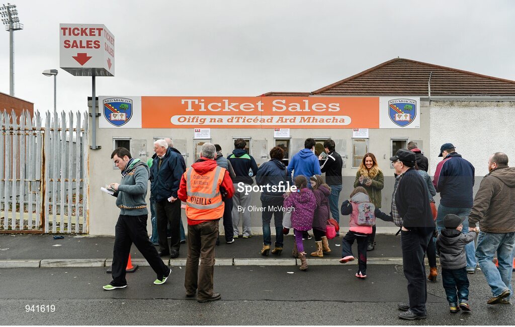 30 November 2014; A general view of the busy ticket box. AIB Ulster GAA Football Senior Club Championship Final, Omagh St Enda's v Slaughtneil, Athletic Grounds, Armagh. Picture credit: Oliver McVeigh / SPORTSFILE