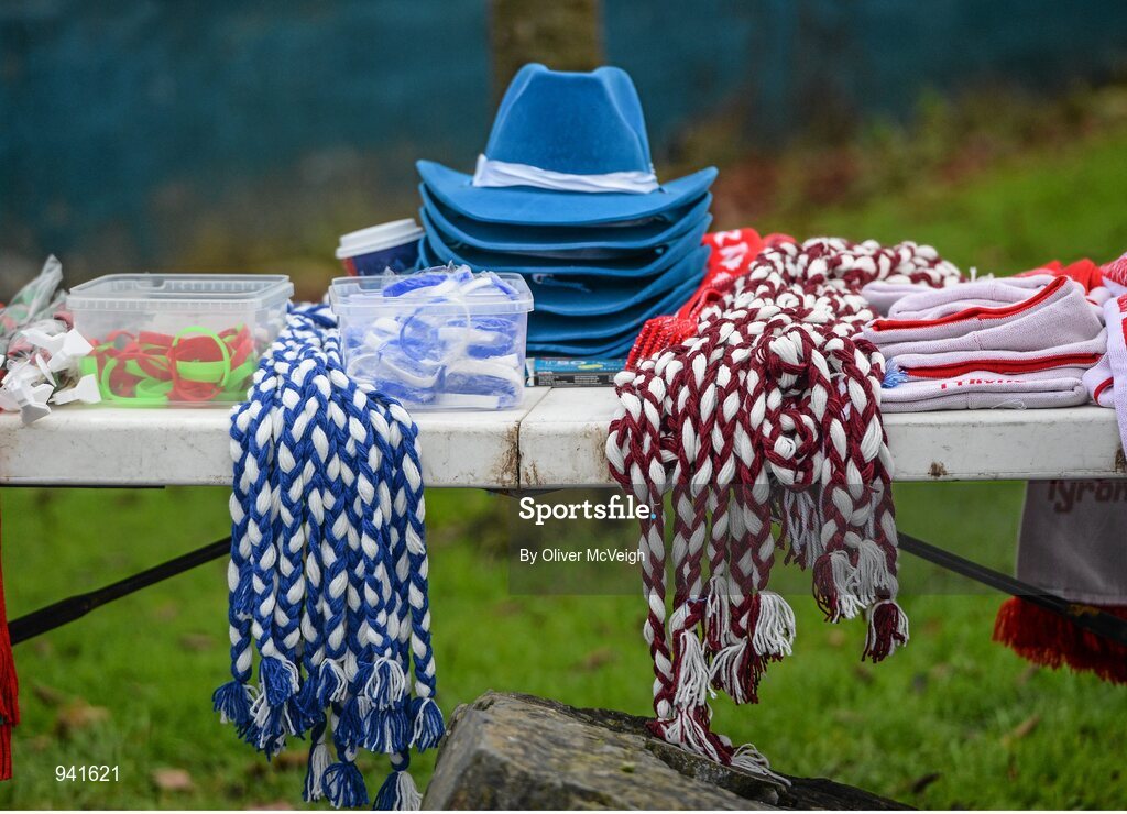 30 November 2014; Hats flags and headbands for supporters. AIB Ulster GAA Football Senior Club Championship Final, Omagh St Enda's v Slaughtneil, Athletic Grounds, Armagh. Picture credit: Oliver McVeigh / SPORTSFILE