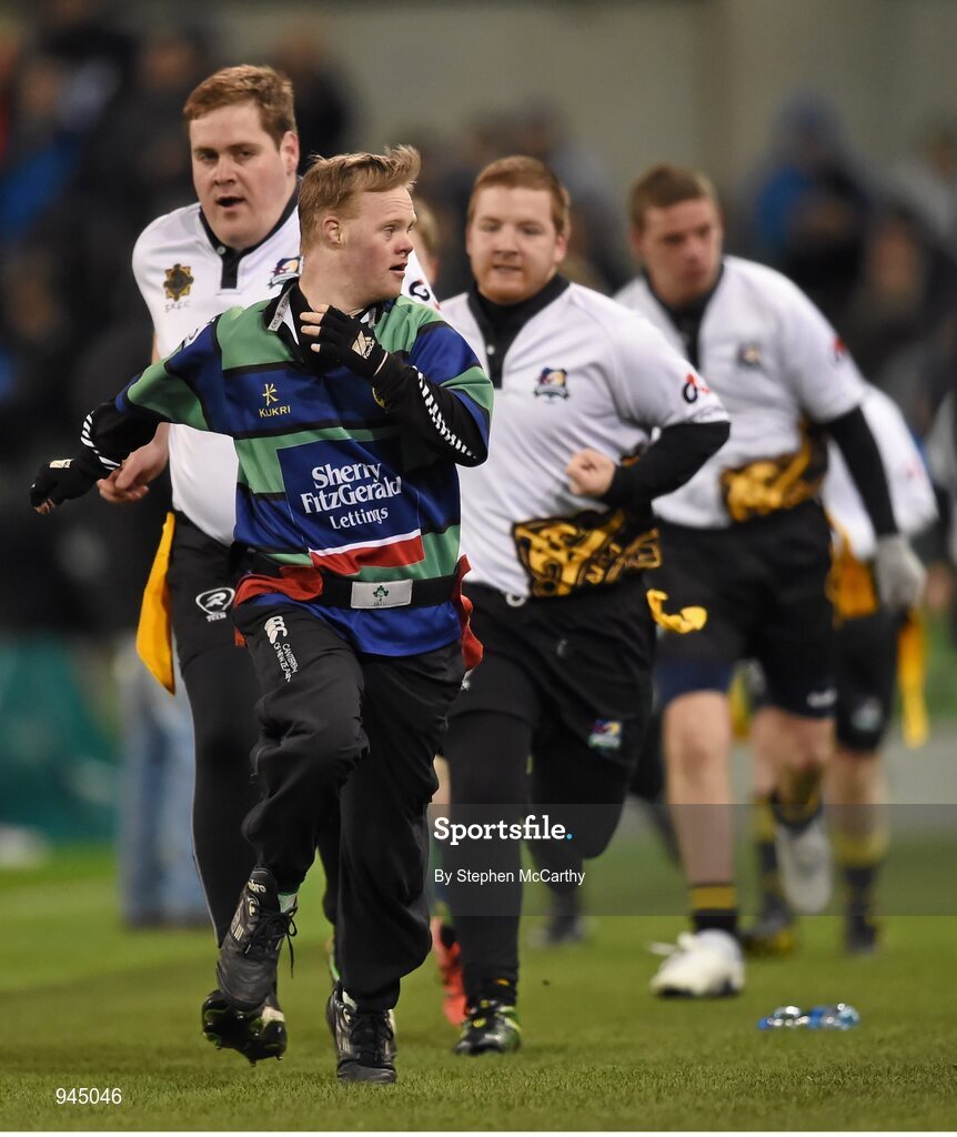 13 December 2014; Action from the Bank of Ireland's Half-Time Minis game featuring Westmanstown Taggers and Seapoint RFC. European Rugby Champions Cup 2014/15, Pool 2, Round 4, Leinster v Harlequins. Aviva Stadium, Lansdowne Road, Dublin. Picture credit: Stephen McCarthy / SPORTSFILE