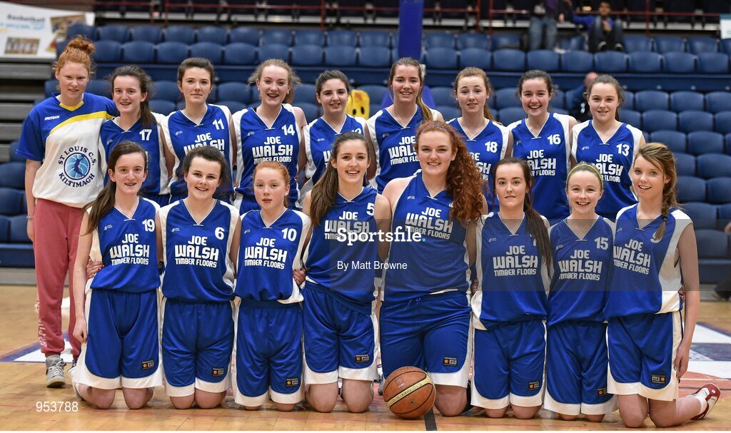 21 January 2015; The St Louis Kiltimagh squad. All-Ireland Schools Cup U16B Girls Final, St Louis Kiltimagh v Mercy Mounthawk. National Basketball Arena, Tallaght, Dublin. Picture credit: Matt Browne / SPORTSFILE