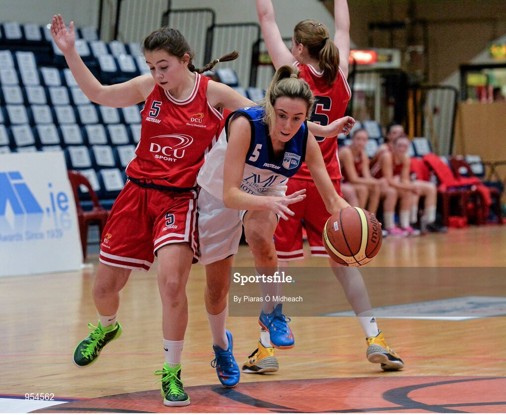 24 January 2015; Hollie Herlihy, Glanmire BC, in action against Anna Brennan, DCU Mercy. Basketball Ireland Women's U18 National Cup Final, DCU Mercy v Glanmire BC, National Basketball Arena, Tallaght, Dublin. Picture credit: Piaras O Midheach / SPORTSFILE