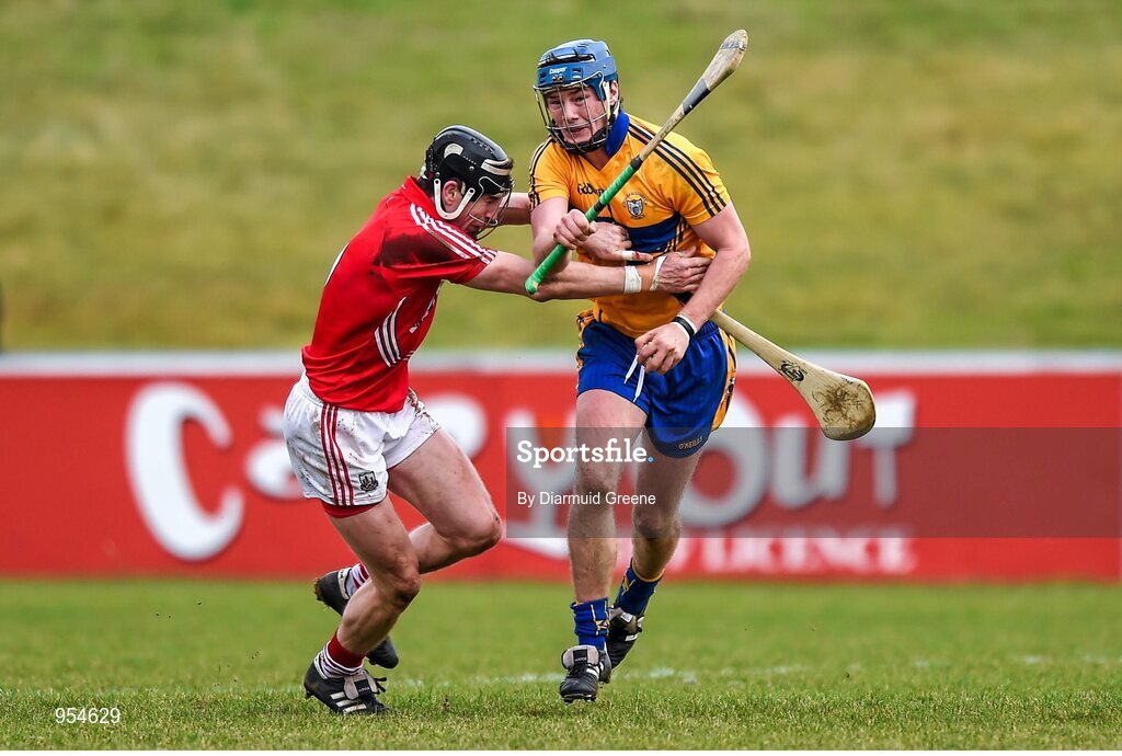 24 January 2015; Bobby Duggan, Clare, in action against Andy Walsh, Cork. Waterford Crystal Cup, Semi-Final, Cork v Clare, Mallow, Co. Cork. Picture credit: Diarmuid Greene / SPORTSFILE