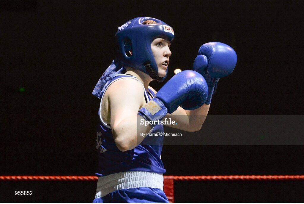 24 January 2015; Clare Grace, Callan, Kilkenny, during their 69 kg bout with Christina Desmond, Macroom, Cork. National Elite Boxing Championship Finals, National Stadium, Dublin. Picture credit: Piaras Ó Mídheach / SPORTSFILE
