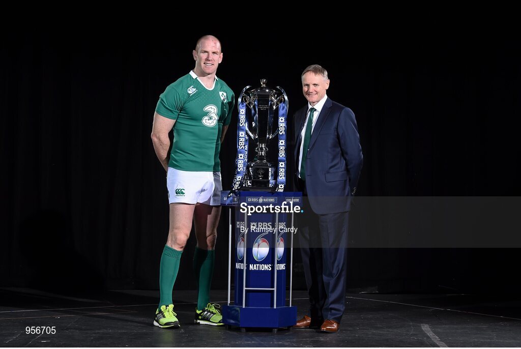 28 January 2015; In attendance at the launch of the RBS Six Nations Championship Launch 2015 are Ireland's Paul O'Connell and head coach Joe Schmidt. RBS Six Nations Championship Launch 2015, The Hurlingham Club, Ranelagh Gardens, London, England. Picture credit: Ramsey Cardy / SPORTSFILE
