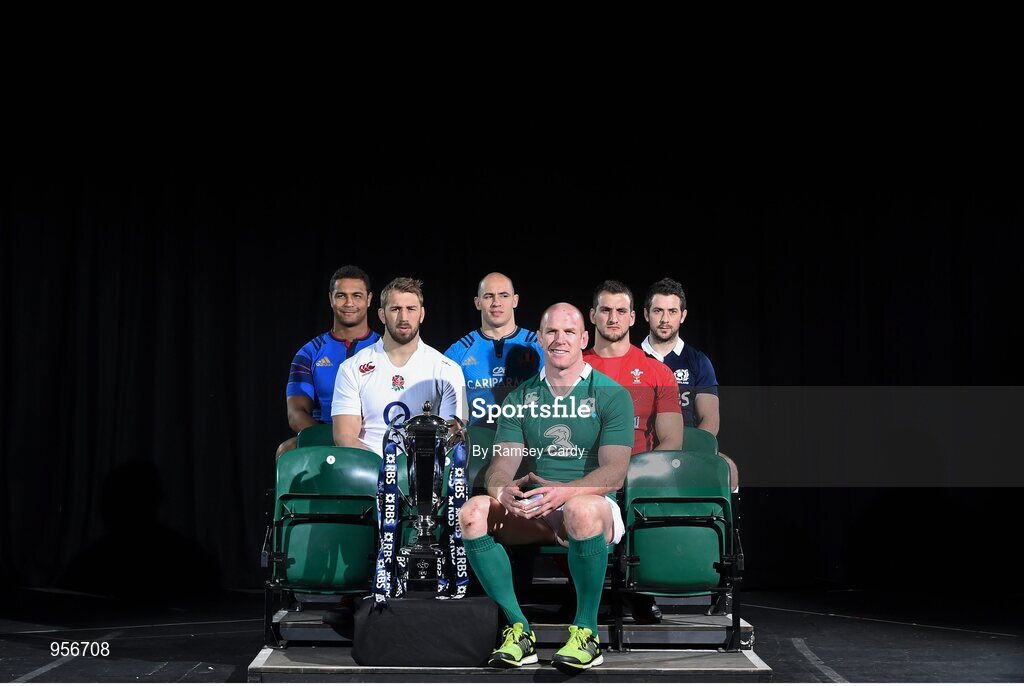 28 January 2015; In attendance at the launch of the RBS Six Nations Championship Launch 2015 are team captains, from left to right, France's theirry Dusautoir, England's Chris Robshaw, Italy's Sergio Parisse, Ireland's Paul O'Connell, Wales' Sam Warburton and Scotland's Greig Laidlaw. RBS Six Nations Championship Launch 2015, The Hurlingham Club, Ranelagh Gardens, London, England. Picture credit: Ramsey Cardy / SPORTSFILE