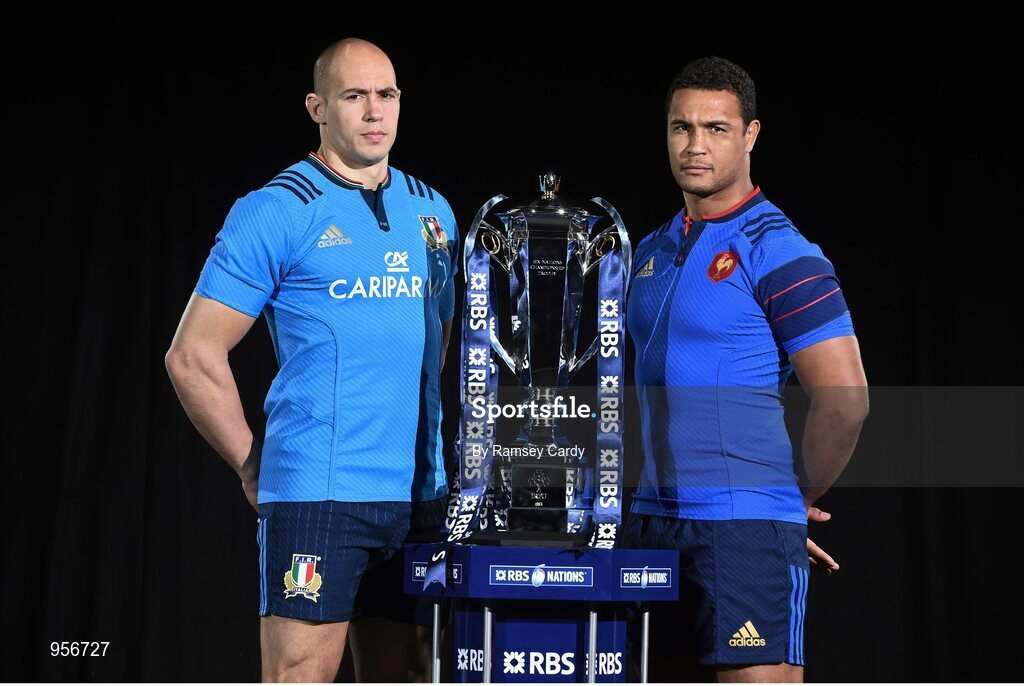 28 January 2015; In attendance at the launch of the RBS Six Nations Championship Launch 2015 are team captains, Italy's Sergio Parisse, left, and France's theirry Dusautoir. RBS Six Nations Championship Launch 2015, The Hurlingham Club, Ranelagh Gardens, London, England. Picture credit: Ramsey Cardy / SPORTSFILE