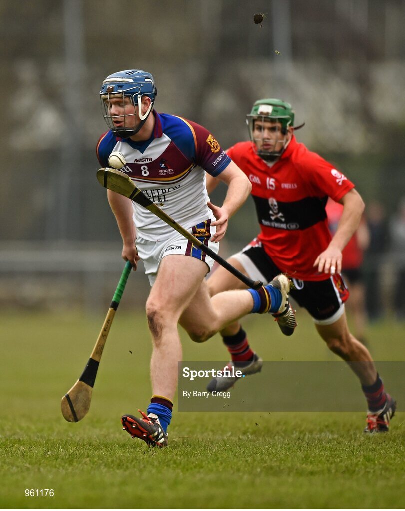10 February 2015; Jason Forde, UL, in action against Alan Cadogan, UCC. Independent.ie Fitzgibbon Cup, Group B, Round 3, UCC v UL, Mardyke, Cork. Picture credit: Barry Cregg / SPORTSFILE