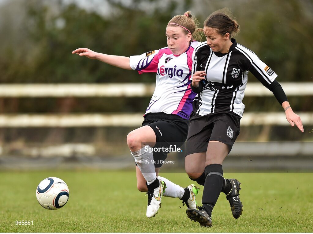 22 February 2015; Claire O'Riordan, Wexford Youths, in action against Kylie Murphy, Raheny United. Continental Tyres Women's National League, Wexford Youths v Raheny United, Ferrycarraig Park, Wexford. Picture credit: Matt Browne / SPORTSFILE