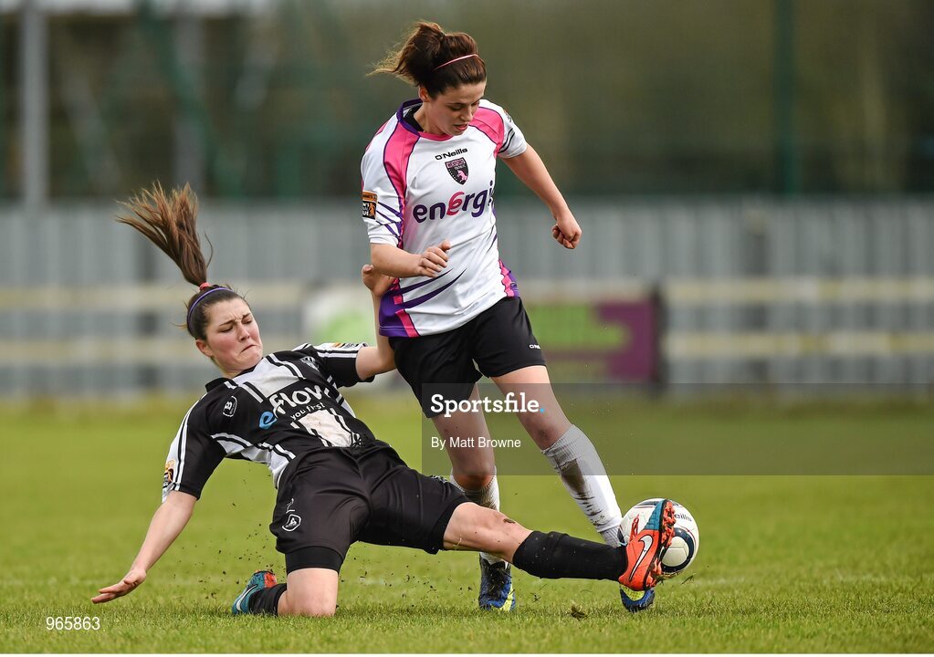 22 February 2015; Amy Walsh, Wexford Youths, in action against Keeva Keenan, Raheny United. Continental Tyres Women's National League, Wexford Youths v Raheny United, Ferrycarraig Park, Wexford. Picture credit: Matt Browne / SPORTSFILE