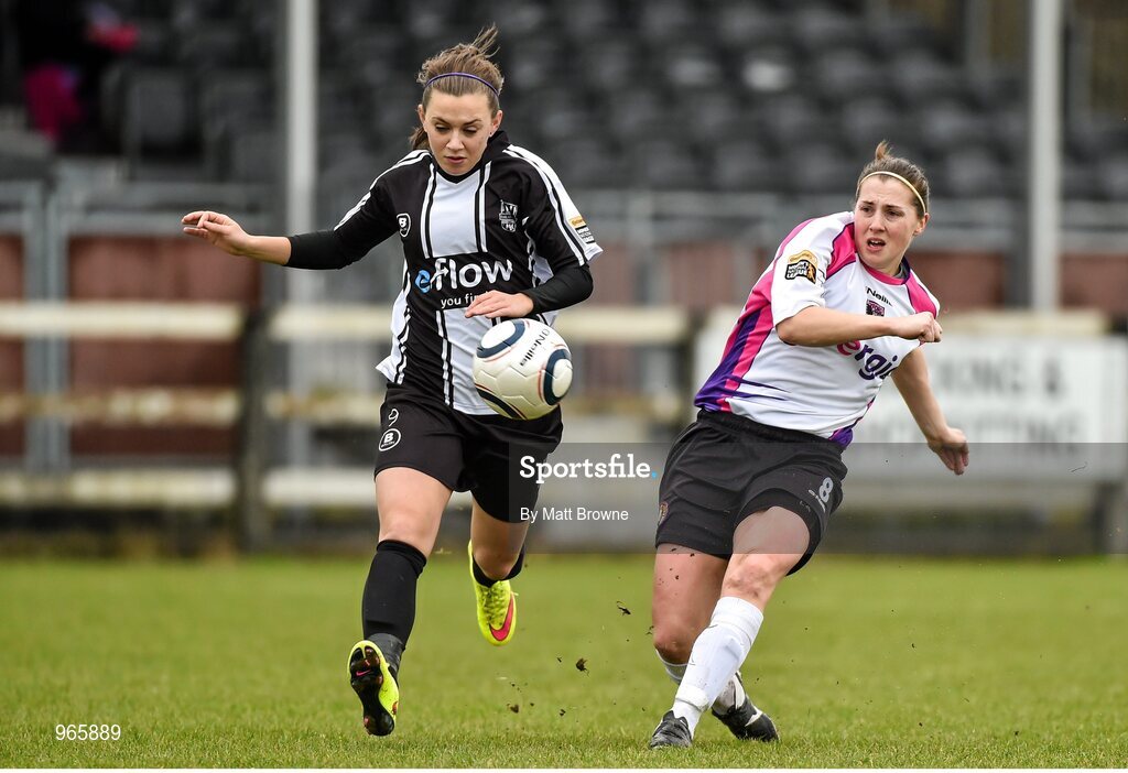 22 February 2015; Edel Kennedy, Wexford Youths, in action against Katie McCabe, Raheny United. Continental Tyres Women's National League, Wexford Youths v Raheny United, Ferrycarraig Park, Wexford. Picture credit: Matt Browne / SPORTSFILE