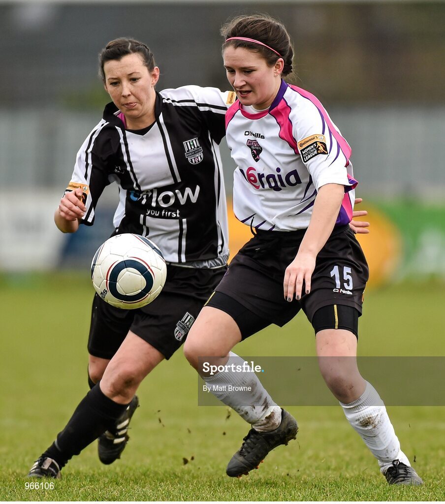 22 February 2015; Aisling Frawley, Wexford Youths, in action against Clare Conlon, Raheny United. Continental Tyres Women's National League, Wexford Youths v Raheny United, Ferrycarraig Park, Wexford. Picture credit: Matt Browne / SPORTSFILE