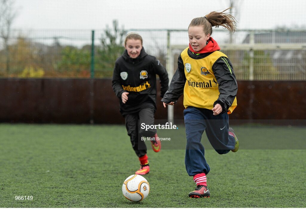 22 February 2015; Vanessa Furlong from Wexford Youths in action against Siun Murdift from Gorey Rangers FC at the Continental Tyres Fan Zone. Continental Tyres Women's National League, Wexford Youths v Raheny United, Ferrycarraig Park, Wexford. Picture credit: Matt Browne / SPORTSFILE