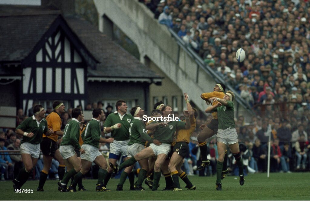 19 October 1991; Brendan Mullin, right, Ireland, contests the ball. Ireland v Australia. Lansdowne Road. Ireland 18 Australia 19. Picture credit: SPORTSFILE