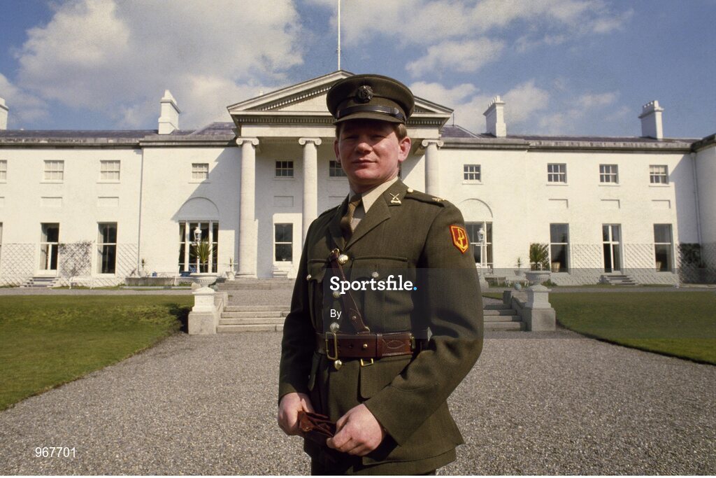 25 March 1985; Ciaran Fitzgerald, Irish Rugby team captain, Aide-de-Camp to President Patrick Hillery. Picture credit; SPORTSFILE