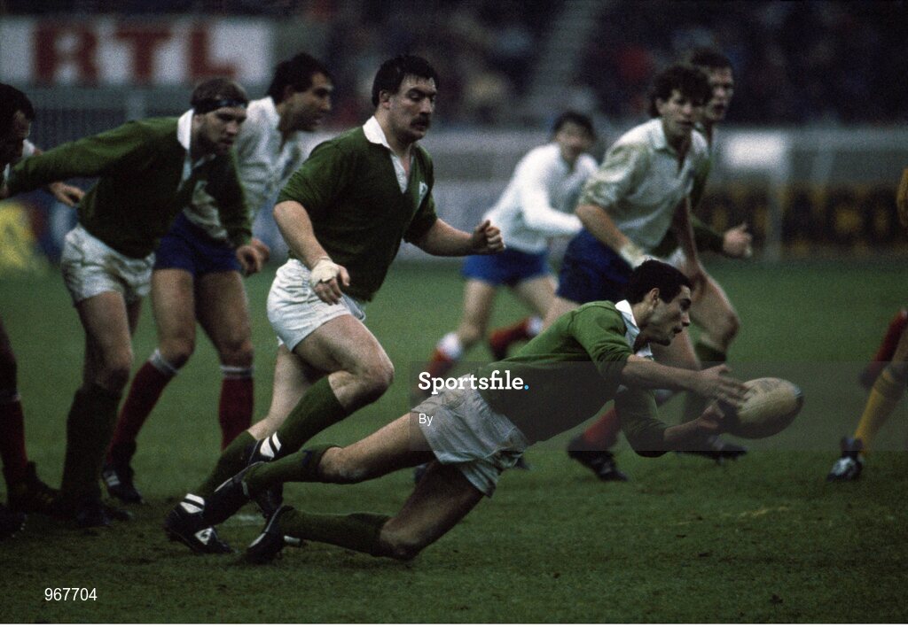 1 February 1986; Michael Bradley, Ireland, in action. Ireland v France. Parc des Princes, France. Ireland 9 France 29. Picture credit: SPORTSFILE