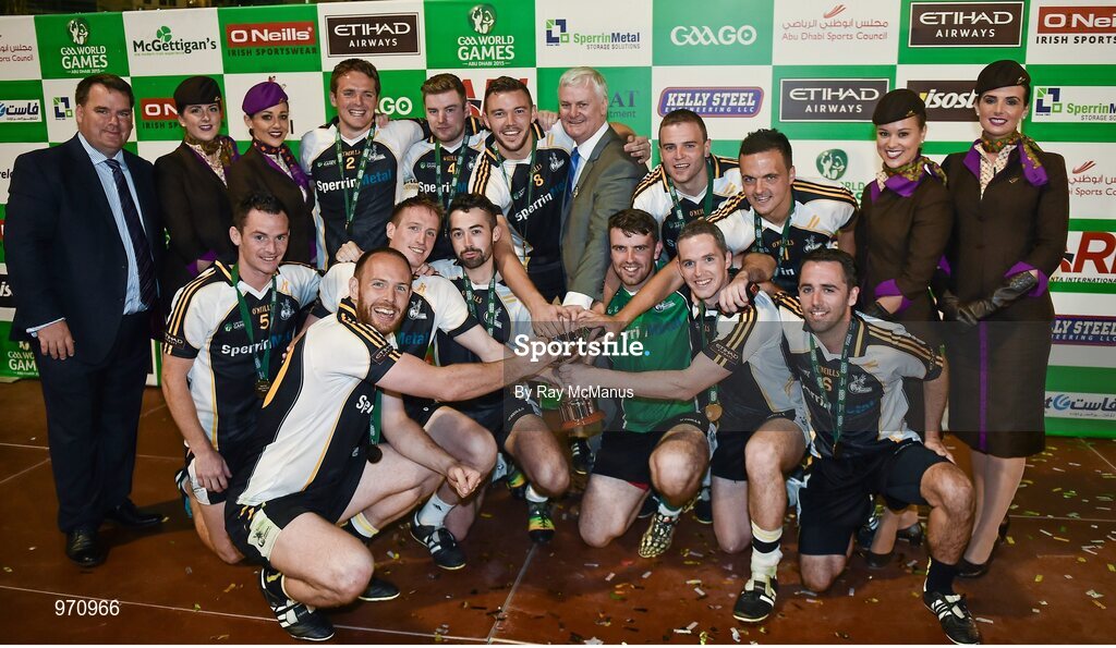 7 March 2015; The Middle East 2 team celebrate after their victory over the Middle East 1 team in the GAA World Games Men's final. Zayed Sports Stadium, Abu Dhabi, United Arab Emirates. Picture credit: Ray McManus / SPORTSFILE