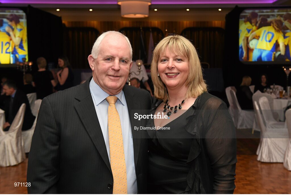 7 March 2015; Pictured at the official dinner of the GAA Ladies Football Annual Congress 2015 are incoming President Marie Hickey along with her husband Pat Moore. The Inn at Dromoland, Dromoland, Newmarket On Fergus, Co. Clare. Picture credit: Diarmuid Greene / SPORTSFILE