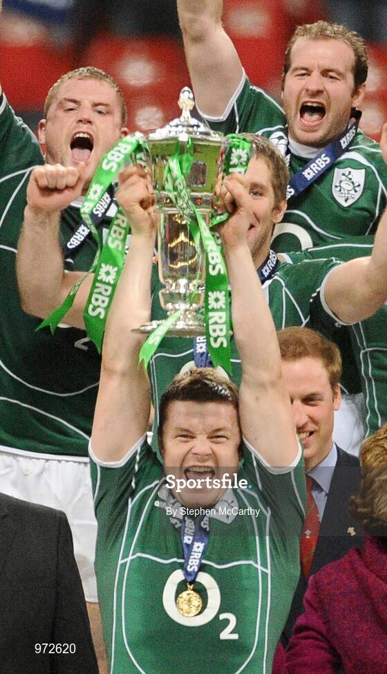 21 March 2009; Ireland captain Brian O'Driscoll lifts the RBS Six Nations Championship trophy. RBS Six Nations Championship, Wales v Ireland, Millennium Stadium, Cardiff, Wales. Picture credit: Stephen McCarthy / SPORTSFILE
