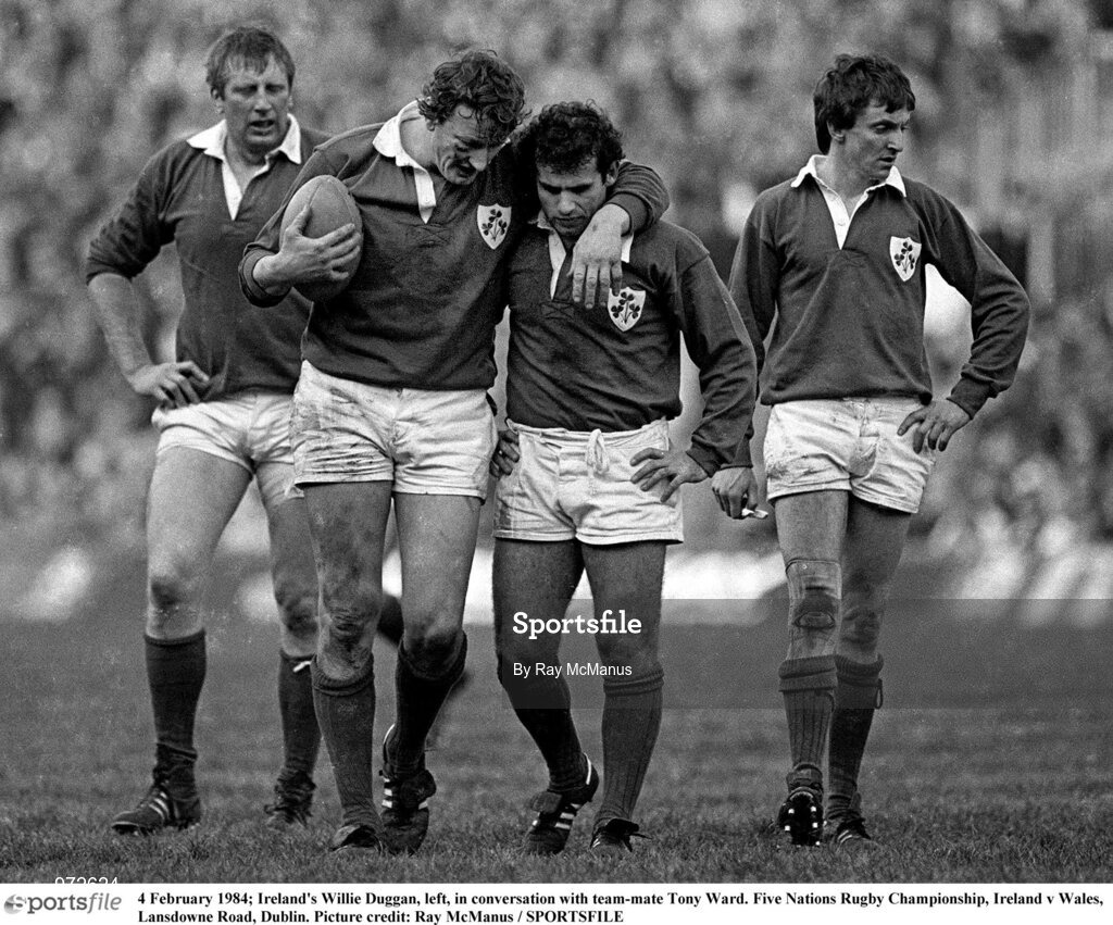 4 February 1984; Ireland players, from left, Moss Keane, Willie Duggan, Tony Ward and Tony Doyle during the Five Nations Rugby Championship match between Ireland and Wales at Lansdowne Road in Dublin. Photo by Ray McManus/Ssportsfile