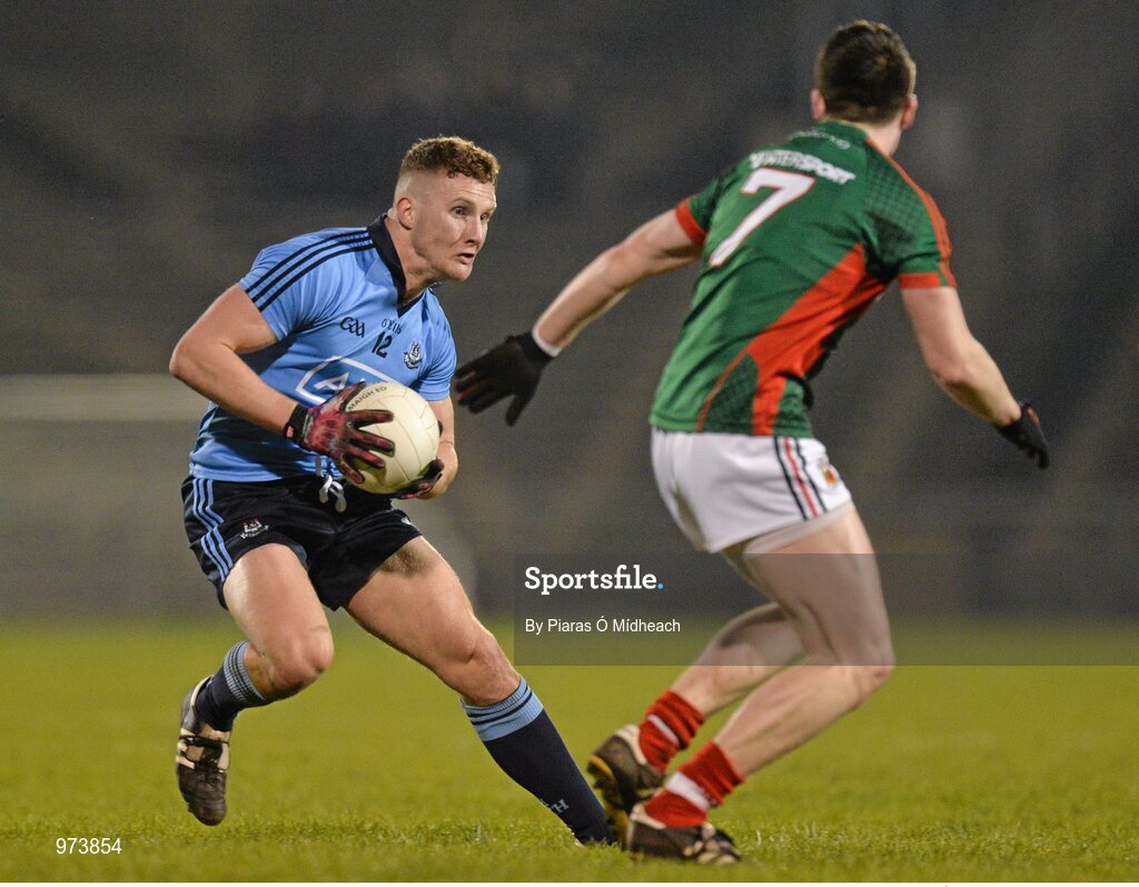 14 March 2015; Ciaran Kilkenny, Dublin, in action against Patrick Durcan, Mayo. Allianz Football League Division 1 Round 5, Mayo v Dublin. Elverys MacHale Park, Castlebar, Co. Mayo. Picture credit: Piaras Ó Mídheach / SPORTSFILE