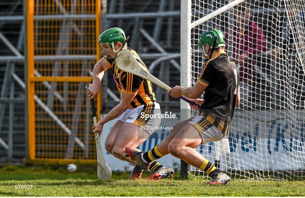 22 March 2015; Kilkenny full back Paul Murphy, supported by goalkeeper Eoin Murphy, saves a last minute penalty. Allianz Hurling League Division 1A, round 5, Kilkenny v Clare, Nowlan Park, Kilkenny. Picture credit: Ray McManus / SPORTSFILE