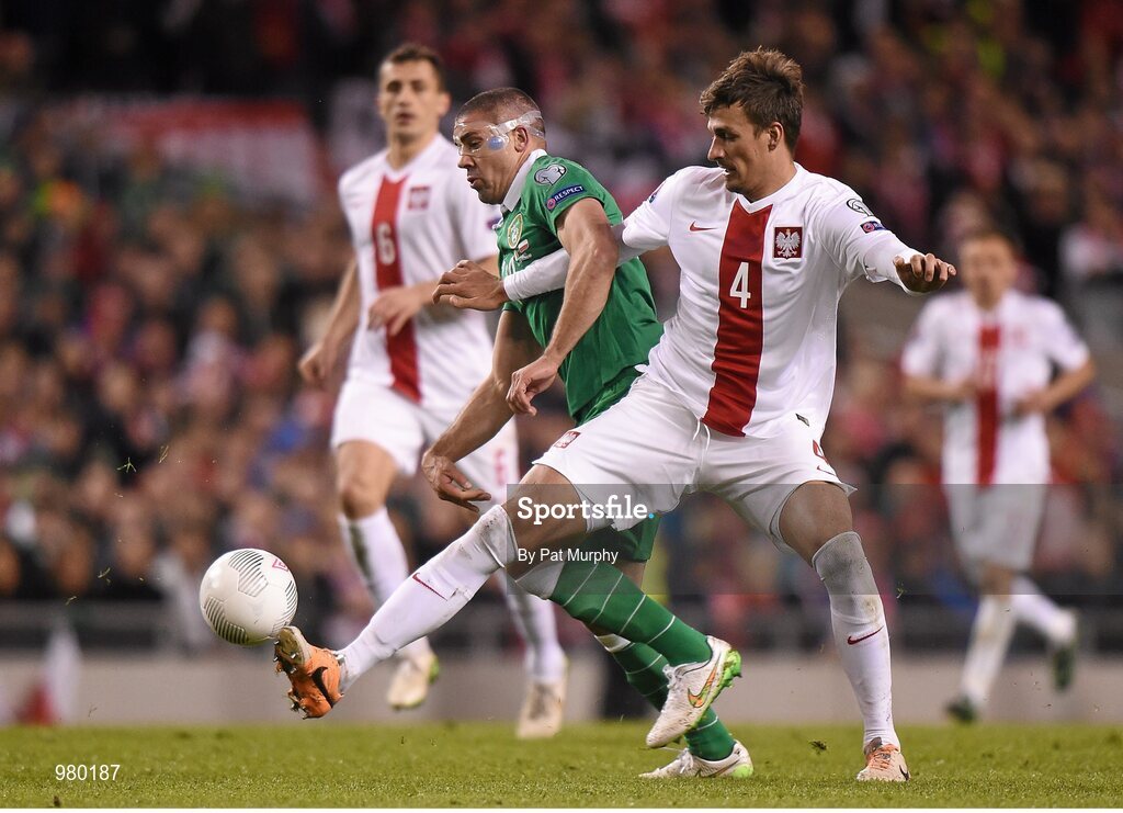 29 March 2015; Jon Walters, Republic of Ireland, is tackled by Lukasz Szukala, Poland. UEFA EURO 2016 Championship Qualifier, Group D, Republic of Ireland v Poland. Aviva Stadium, Lansdowne Road, Dublin. Picture credit: Pat Murphy / SPORTSFILE Picture credit: Pat Murphy / SPORTSFILE