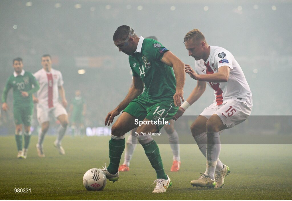 29 March 2015; Jonathan Walters, Republic of Ireland, in action against Kamil Glik, Poland. UEFA EURO 2016 Championship Qualifier, Group D, Republic of Ireland v Poland. Aviva Stadium, Lansdowne Road, Dublin. Picture credit: Pat Murphy / SPORTSFILE Picture credit: Pat Murphy / SPORTSFILE
