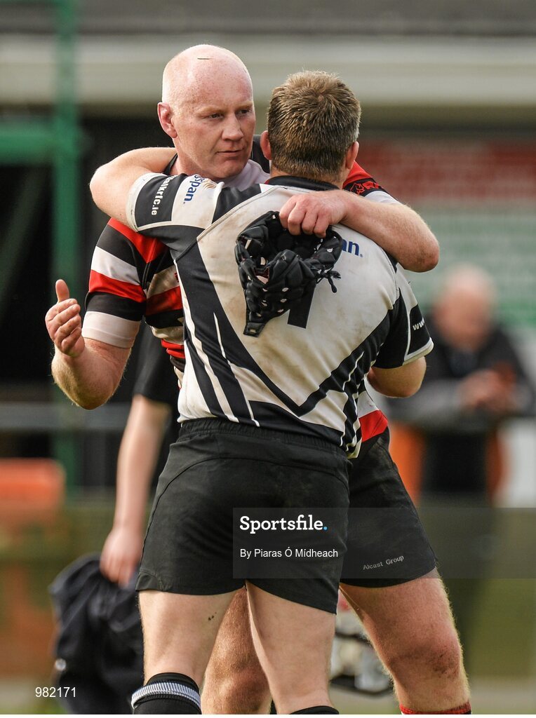 5 April 2015; Declan O'Brien, Enniscorthy, consoles Johnny Gray, Dundalk, after the game. Bank of Ireland Provincial Towns Cup Semi-Final, Dundalk v Enniscorthy. Naas RFC, Naas, Co. Kildare. Picture credit: Piaras Ó Mídheach / SPORTSFILE