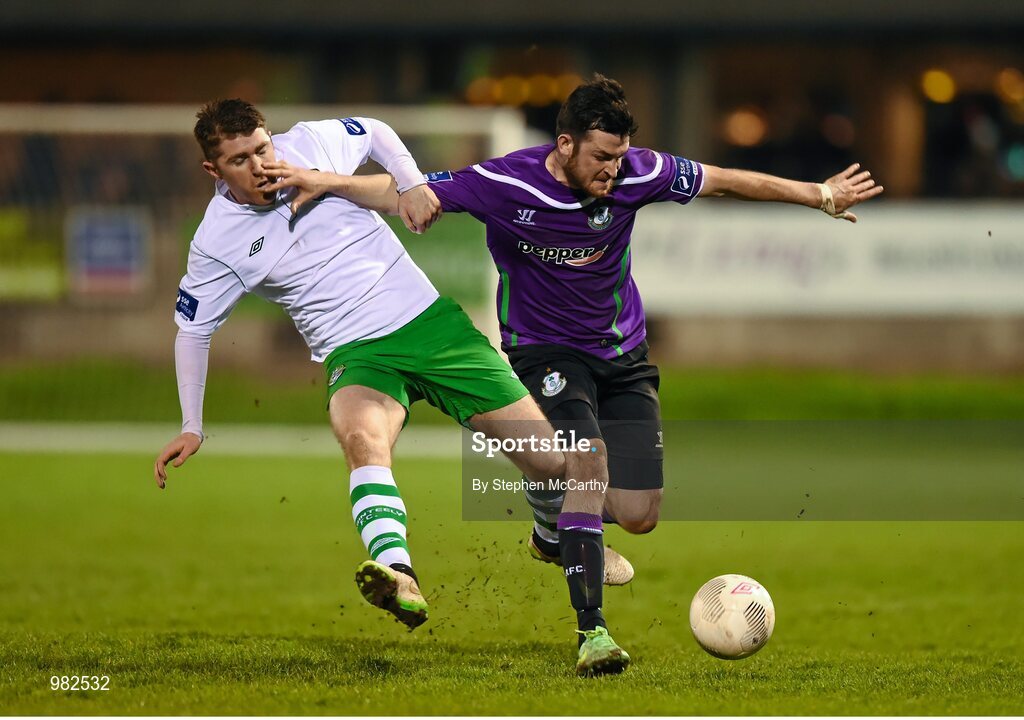 6 April 2015; Ryan Brennan, Shamrock Rovers, in action against Conor Foley, Cabinteely. EA Sports Cup Second Round, Cabinteely v Shamrock Rovers. Stradbrook Road, Blackrock, Co. Dublin. Picture credit: Stephen McCarthy / SPORTSFILE