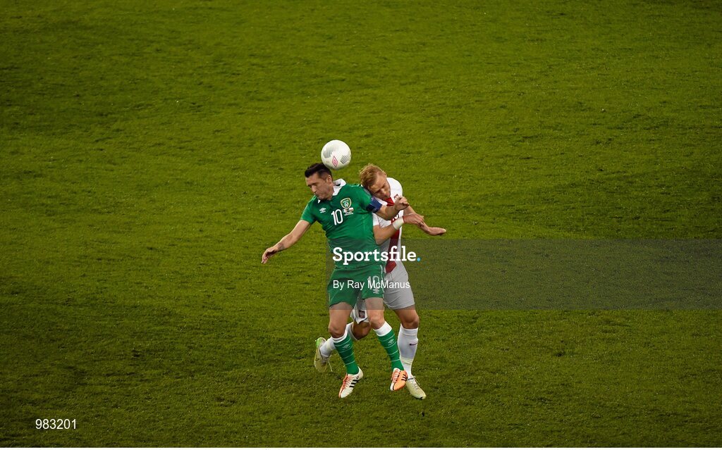 29 March 2015; Robbie Keane, Republic of Ireland, in action against Kamil Glik, Poland. UEFA EURO 2016 Championship Qualifier, Group D, Republic of Ireland v Poland. Aviva Stadium, Lansdowne Road, Dublin. Picture credit: Ray McManus / SPORTSFILE