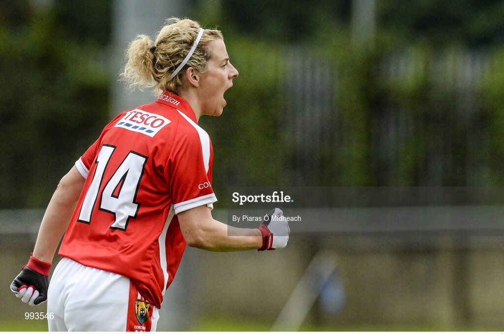 9 May 2015; Valerie Mulcahy, Cork, celebrates scoring a first half point. TESCO HomeGrown Ladies National Football League, Division 1 Final, Cork v Galway. Parnell Park, Dublin. Picture credit: Piaras Ó Mídheach / SPORTSFILE