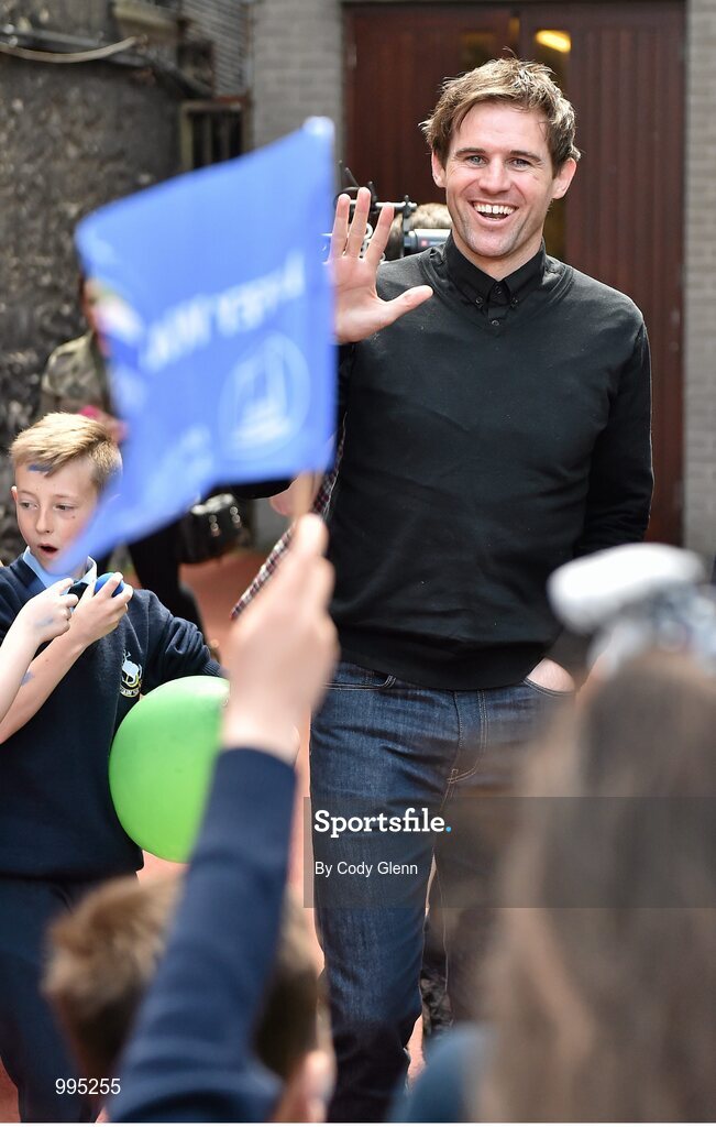 11 May 2015; Former Republic of Ireland International Kevin Kilbane arrives at City Quay N.S. on Gloucester Street South in Dublin 2 during the FAI Jnr Cup Tour and Community Day. Picture credit: Cody Glenn / SPORTSFILE