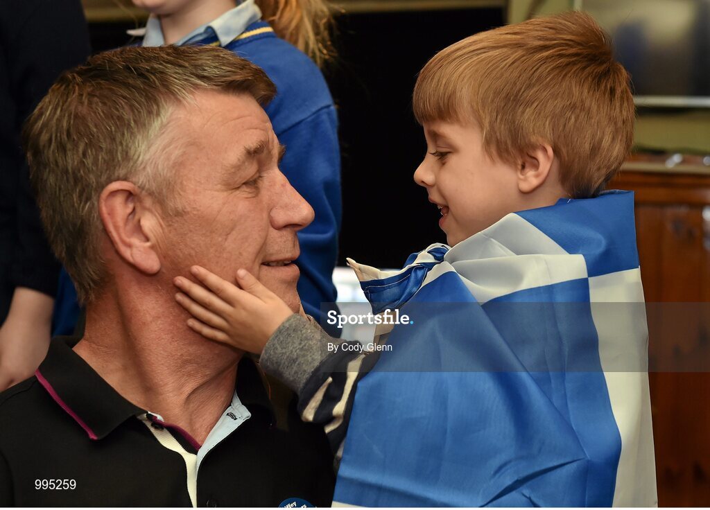 11 May 2015; Liffey Wanderers' supporter Scott Andrews, 3, plays with grandfather Derek Andrews at The Padraig Pearse pub in Dublin, a stop on the FAI Jnr Cup Tour and Community Day. The Padraig Pearse pub. Pearse Street, Dublin. Picture credit: Cody Glenn / SPORTSFILE
