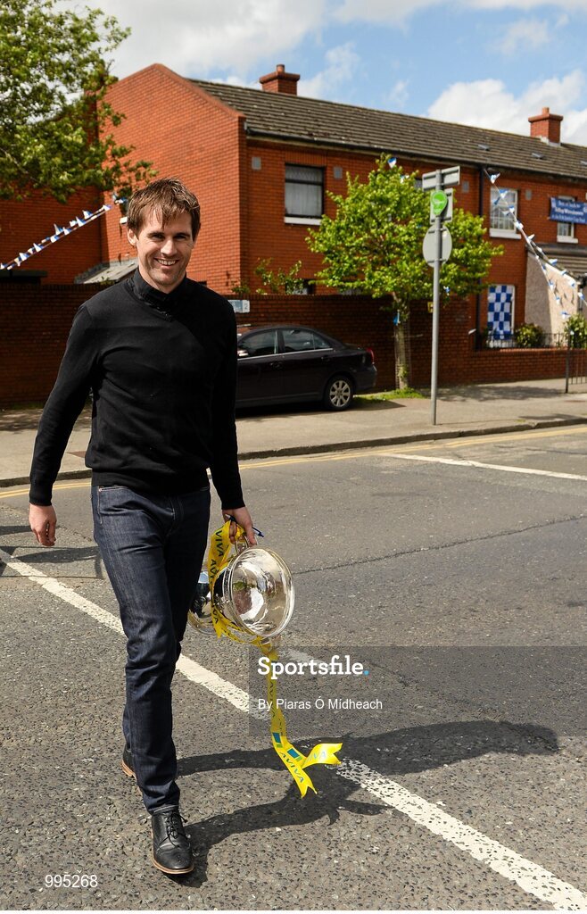 11 May 2015; Former Republic of Ireland International Kevin Kilbane makes his way to The Padraig Pearse to surprise former Liffey Wanderers' player and manager Parko Kealy with VIP tickets to the FAI Junior Cup Final at the Aviva Stadium on Sunday during the FAI Junior Cup Tour and Community Day. The Padraig Pearse, Pearse Street, Dublin. Picture credit: Piaras Ó Mídheach / SPORTSFILE