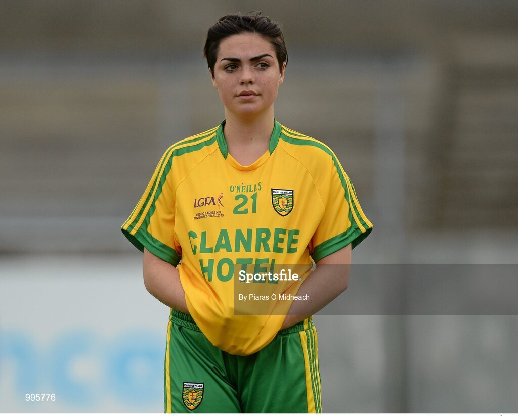 9 May 2015; Rose Boyle, Donegal, dejected after the game. TESCO HomeGrown Ladies National Football League, Division 2 Final, Armagh v Donegal. Parnell Park, Dublin. Picture credit: Piaras Ó Mídheach / SPORTSFILE