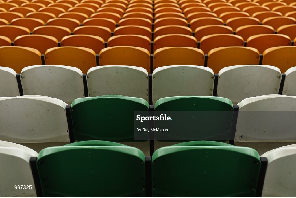 16 May 2015; A general view of seating, in the Offaly colours, at O'Connor Park before the game. Leinster GAA Football Senior Championship, Round 1, Offaly v Longford, O'Connor Park, Tullamore, Co. Offaly. Picture credit: Ray McManus / SPORTSFILE